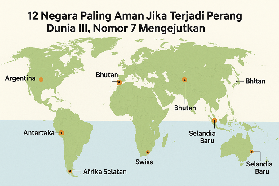 Situasi ini membuat banyak orang mulai berpikir jauh ke depan: jika perang besar benar-benar terjadi, ke mana sebaiknya mengungsi? Beberapa media internasional, seperti Economic Times dan Daily Times, telah merangkum daftar negara yang diprediksi aman jika konflik global berskala besar meletus.
