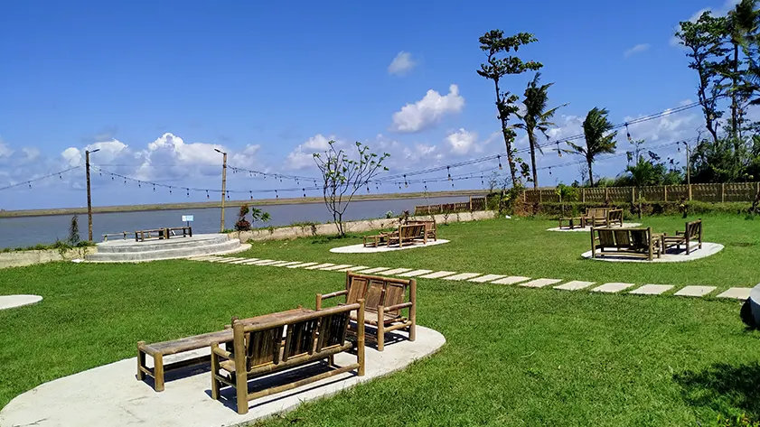 The Muara Jogja menawarkan area makan outdoor dengan kursi dan bean bag yang nyaman. Banyak spot foto menarik yang membuat tempat ini viral, terutama bagi pecinta senja.