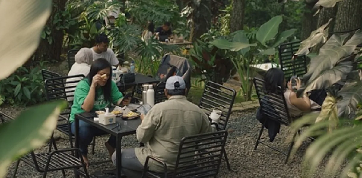 Tersedia area indoor minimalis dan outdoor yang dipenuhi bean bag, tribun kecil, air mancur, hingga jembatan kayu yang sering muncul di foto-foto FYP TikTok.