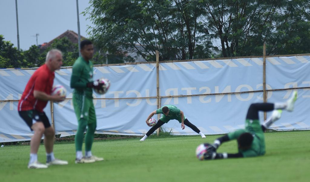 Dengan tinggi badan mencapai 192 cm, Przybek menjalani latihan ringan di bawah arahan pelatih kiper Mario Jozic dan asisten pelatih kiper I Made Wirawan.