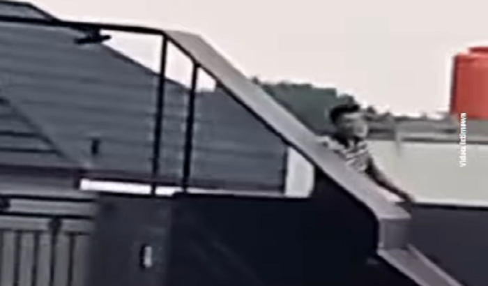 Dalam rekaman tersebut, terlihat pria yang bersangkutan bersembunyi di atap rumah warga sebelum akhirnya disergap.