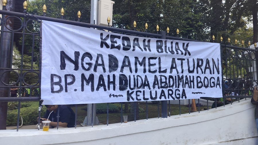 Salah satu spanduk yang paling menyita perhatian bertuliskan, “Kedah Bijak Ngadamel Aturan, Bapak mah Duda Abi mah Gaduh Keluarga” — kalimat bernada sindiran yang menyerukan pentingnya kebijakan yang bijak, dengan menyentuh sisi personal dan emosional. Spanduk ini menggambarkan keresahan para pekerja yang merasa tidak dilibatkan dalam pembuatan aturan yang memengaruhi langsung penghidupan mereka.