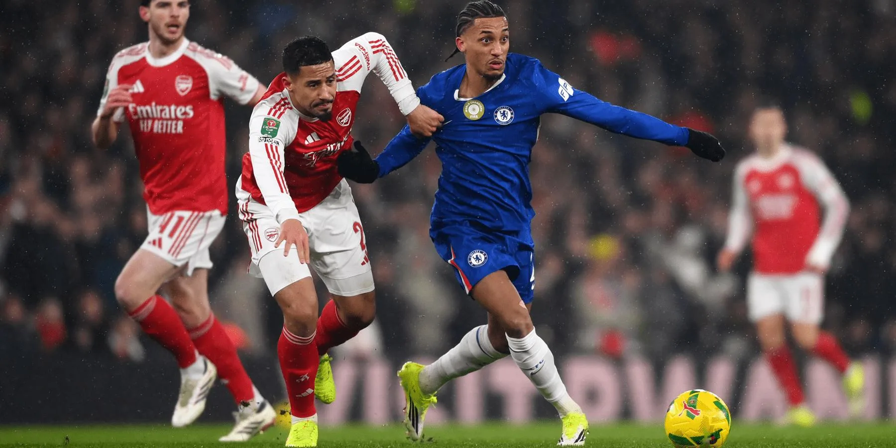 Chelsea terus mencoba menembus pertahanan Arsenal melalui Joao Pedro dan Liam Delap, sementara Jorrel Hato juga melepaskan tendangan keras pada menit ke-55, tapi masih dapat diblok. Pelatih Chelsea Liam Rosenior melakukan pergantian dengan memasukkan Cole Palmer dan Estevao pada menit ke-60 untuk menambah daya serang.