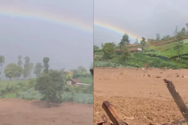 bukamata.id – Fenomena tak biasa terjadi di kawasan terdampak longsor Pasirlangu, Kecamatan Parongpong, Kabupaten Bandung Barat. Sehari setelah bencana longsor melanda wilayah tersebut pada 24 Januari 2026, sebuah pelangi tampak muncul menghiasi langit di atas area yang porak-poranda. Peristiwa langka itu terekam kamera warga dan dibagikan melalui akun TikTok @mang.legeg. Unggahan tersebut dengan cepat menyebar dan menyedot perhatian warganet, memicu ribuan respons emosional. Dalam rekaman video yang beredar luas, terlihat lengkungan pelangi membentang tepat di atas lokasi longsoran. Di bagian depan, kondisi area masih dipenuhi tanah cokelat, lumpur basah, serta sisa reruntuhan bangunan seperti potongan kayu dan genteng yang berserakan tak…