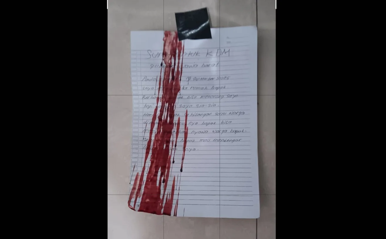 bukamata.id – Depok digemparkan dengan penemuan seorang pria berinisial PO (53) yang ditemukan meninggal dunia dengan kondisi tergantung di rumahnya, kawasan Kelurahan Tanah Baru, Kecamatan Beji, pada Sabtu malam (20/9/2025). Yang mengejutkan, di dada korban terdapat sepucuk surat berlumur darah yang ditujukan kepada Gubernur Jawa Barat, Dedi Mulyadi. Surat tersebut berisi ungkapan kekecewaan korban terhadap sang gubernur. Kapolsek Beji, Komisaris Josman Harganya, menjelaskan bahwa korban pertama kali ditemukan oleh istrinya. “Saksi melihat korban sudah dalam posisi tergantung di kamar,” ucap Josman, Minggu (21/9/2025). Kaget melihat kondisi suaminya, istri korban segera berteriak dan meminta pertolongan kepada sekuriti perumahan. Pihak keamanan lalu…
