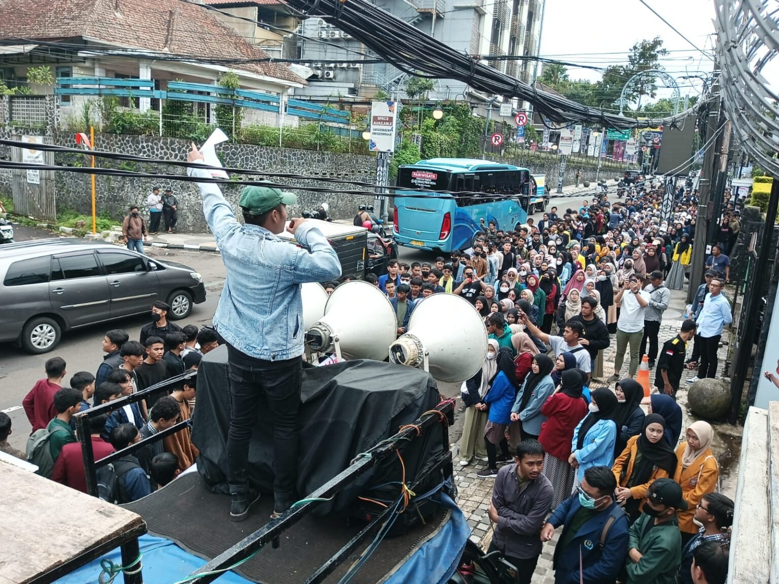 bukamata.id – Ratusan massa yang tergabung dalam Aksi Mahasiswa Jawa Barat Bergerak untuk Keadilan (MJB-Untuk Keadilan) menemui Ridwan Kamil, sampaikan 11 tuntutan untuk Prabowo-Gibran. Aksi damai tersebut, digelar di depan Sekretariat TKD Prabowo-Gibran Jabar, Jalan R.E. Martadinata No 4 Kota Bandung, Senin (22/1/2024). Mahasiswa Universitas Telkom yang juga Koorlap Aksi, Rafly mengatakan, aksi damai bertajuk ‘Aksi Mahasiswa Kawal Suara Rakyat’ ini diikuti oleh ratusan mahasiswa dari 25 kampus di seluruh Jabar. “Jumlah peserta aksi ini dari 20-25 kampus di Jawa Barat dan masing-masing kampus mengirimkan 50 atau lebih mahasiswanya,” ucap Rafly ditemui di lokasi. Aksi damai ini dilatarbelakangi oleh hasil…