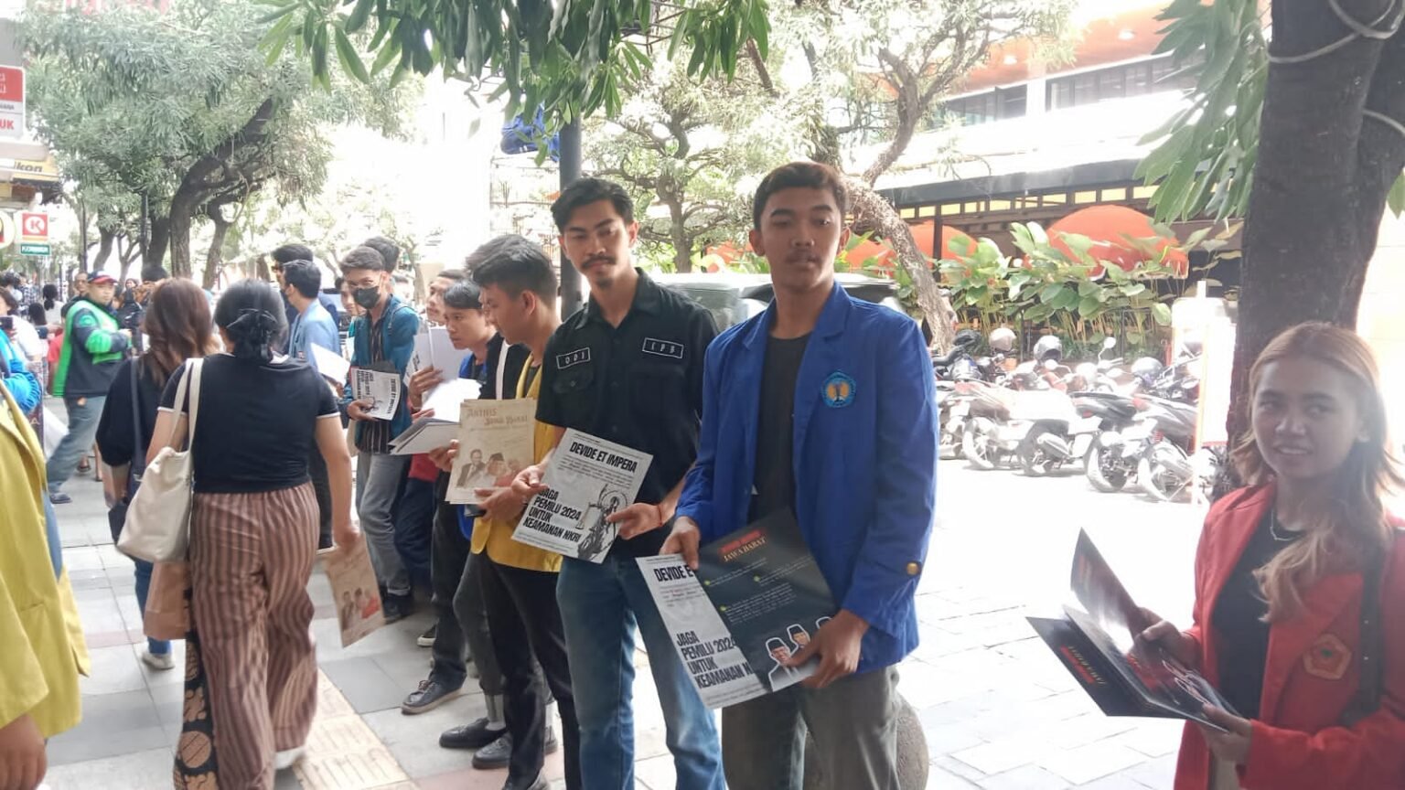 bukamata.id – Aliansi Aktivis Jabar menggelar aksi membagikan flyer di kawasan Braga, Kota Bandung, pada Selasa (16/1/2024). Aksi tersebut, bertujuan untuk mengajak masyarakat menciptakan pemilu damai dan tanpa ada adu domba. Ketua Aliansi Aktivis Jabar, Indrajidt Rai Garibaldi mengatakan, kegiatan ini diikuti oleh sekitar 20 universitas yang tersebar di seluruh wilayah Jabar. “Kita di sini ada 20 universitas se-Jawa Barat, kegiatan hari ini kita memberikan flyer edukasi kepada masyarakat bahwa pemilu itu harus damai, tidak boleh adu domba dan harus tetap berjalan 14 Februari 2024,” ucap Rai. Dari 20 universitas di Jabar tersebut, diantanta ada dari Garut, Majalengka, Sukabumi, Kuningan,…