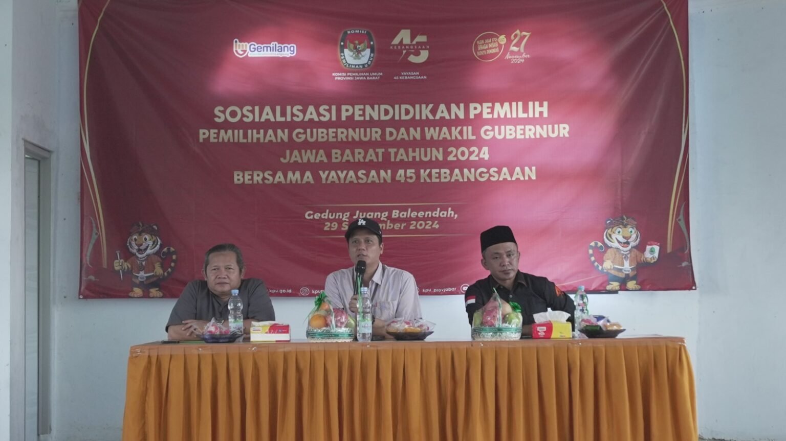 bukamata.id – Dalam rangka meningkatkan kesadaran masyarakat mengenai pentingnya berpartisipasi dalam pemilihan kepala daerah (Pilkada) Jawa Barat 2024, Yayasan Kebangsaan 45 mengadakan sosialisasi di Gedung Juang, Kecamatan Baleendah, Kabupaten Bandung, Minggu (29/9/2024). Kegiatan tersebut dihadiri oleh 50 peserta yang terdiri dari anggota Yayasan Kebangsaan 45, tokoh masyarakat, dan pemerhati pemilu. Acara dimulai pukul 10.00 WIB dan berakhir pukul 12.00 WIB, dengan fokus pada pemaparan aturan pemilu, larangan politik uang, serta pentingnya pemilih untuk bersikap kritis. Ketua Yayasan Kebangsaan 45 Jabar, Ahmad Sahrudin mengajak masyarakat untuk memilih pemimpin yang tepat berdasarkan program kerja dan integritas, bukan popularitas semata. Ahmad menegaskan bahwa…
