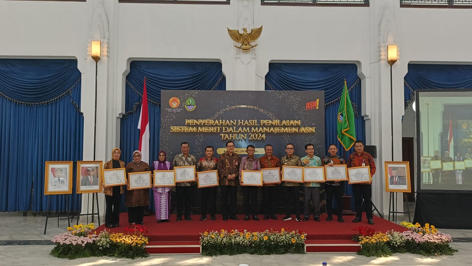 bukamata.id – Pemdaprov Jabar meraih nilai tertinggi penerapan sistem merit atau meritrokasi tahun 2024 dari Komisi Aparatur Sipil Negara (KASN), dengan nilai 400 atau kategori ‘Sangat Baik’. Pada acara Penyerahan Hasil Penilaian Merit Sistem dalam Manajemen ASN Tahun 2024 Wilayah 2, di Gedung Sate Kota Bandung, Rabu (29/5/2024), Kepala Badan Kepegawaian Daerah Jabar Sumasna membacakan sambutan tertulis Penjabat Gubernur Bey Machmudin. “Sistem merit bukan penilaian kinerja semata tapi menciptakan budaya kerja yang adil dan transparan, sehingga pegawai dihargai dan memiliki peluang untuk berkembang,” tutur Sumasna. Menurutnya, Jabar terus berupaya menyelenggarakan pelatihan untuk meningkatkan kapasitas dan kapabilitas pegawai agar siap menghadapi…