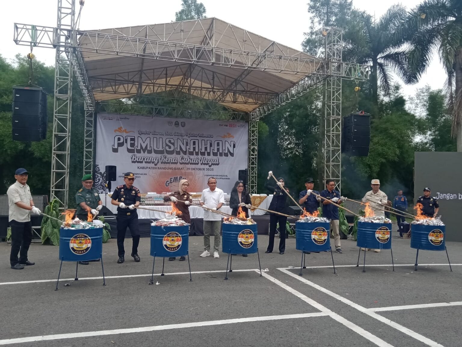 bukamata.id – Pemerintah Daerah Provinsi (Pemprov) Jawa Barat bersama Kantor Wilayah Direktorat Jenderal Bea dan Cukai Jabar melaksanakan pemusnahan terhadap barang kena cukai (BKC) ilegal, di Lapang Parkir Ex Giant Supermarket Kota Baru Parahyangan, Padalarang, Kabupaten Bandung Barat, Rabu (29/10/2025). Barang yang dimusnahkan mencakup 6,8 juta batang rokok ilegal (sigaret), 37.220 mililiter rokok elektrik serta 360 botol minuman mengandung etil alkohol (MMEA) atau setara dengan 212,7 liter. Total nilai barang yang dimusnahkan mencapai Rp10,07 miliar dengan potensi kerugian negara sebesar Rp5,15 miliar. Pemusnahan kali ini merupakan hasil penindakan periode 1 April 2025 sampai dengan 31 Juli 2025. Staf Ahli Gubernur…