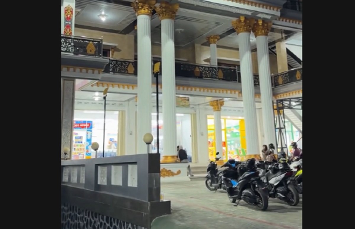 bukamata.id – Bayangkan Anda sedang berkendara di bawah langit malam Kota Pangkalan Bun, Kotawaringin Barat, Kalimantan Tengah. Di antara deretan bangunan komersial yang tampak biasa, tiba-tiba pandangan Anda tertuju pada sebuah bangunan megah dengan pilar-pilar putih menjulang tinggi, aksen emas yang berkilau di bawah temaram lampu, dan arsitektur yang lebih menyerupai gedung pertemuan pejabat atau rumah mewah sultan daripada sebuah tempat belanja kebutuhan harian.