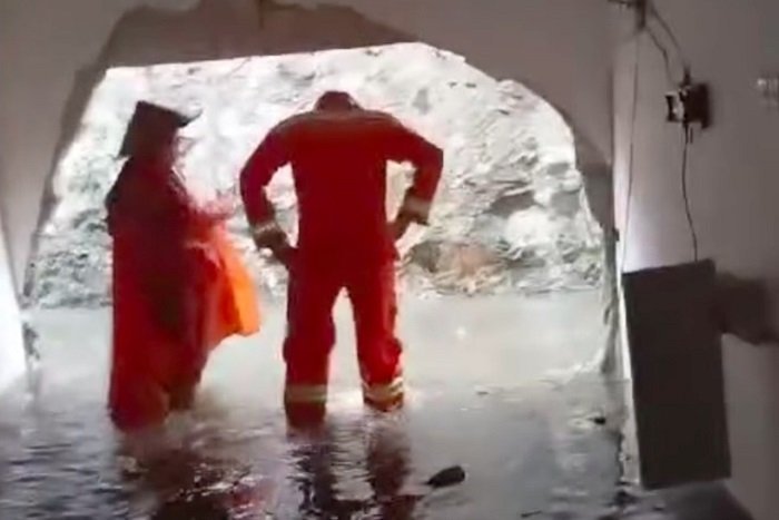 Berdasarkan pemeriksaan awal, tembok rumah diduga jebol akibat saluran air yang tersumbat. Debit air yang terus meningkat akhirnya mengalir deras dan menghancurkan dinding rumah.