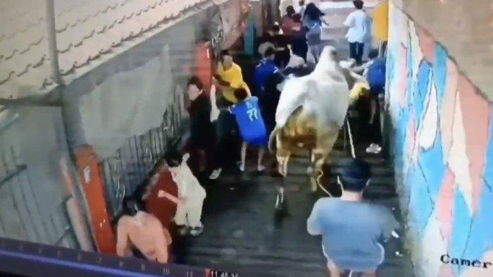 Tak disangka, seekor sapi yang semula diam, tiba-tiba melepaskan diri dari ikatan dan berlari liar ke arah kerumunan. Akses gang yang sempit menyulitkan warga untuk menghindar. Beberapa anak dan orang dewasa tampak panik berusaha melarikan diri, namun beberapa terjatuh akibat saling dorong.