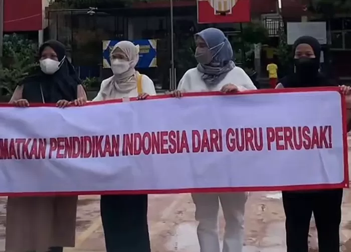 Di tengah kerumunan, terbentang sebuah spanduk dengan tulisan tegas: “Selamatkan pendidikan Indonesia dari guru perusak.” Kalimat itu mencerminkan kegundahan para orang tua yang menilai praktik pendidikan di sekolah tersebut telah melenceng dari nilai keadilan dan moralitas yang seharusnya dijunjung tinggi oleh seorang pendidik.