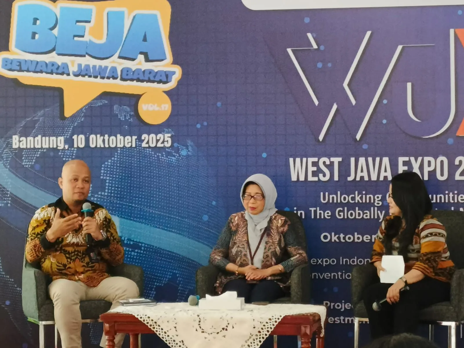 “WJX bukan hanya pameran, melainkan ajang memperkuat kolaborasi, membuka peluang investasi, dan membawa produk Jabar lebih dekat ke pasar dunia,” ujar Nining dalam acara BEJA di Plataran Setda A, Gedung Sate, Kota Bandung, Jumat (10/10/2025).