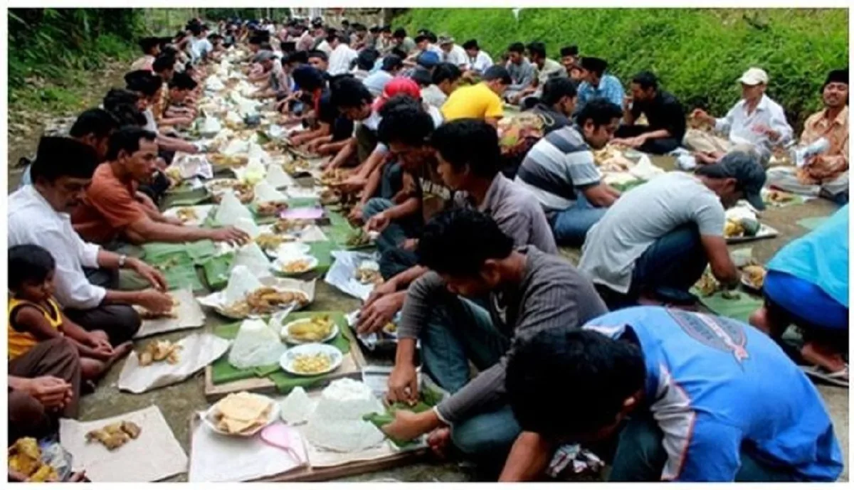Begitu pula dengan kegiatan makan bersama yang mencerminkan semangat berbagi. Rasulullah SAW bersabda: “Wahai sekalian manusia, sebarkanlah salam, berikan makan, sambunglah silaturahim… niscaya kalian akan masuk surga dengan sejahtera.” (HR. At-Tirmidzi).