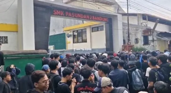 bukamata.id – Ratusan siswa aktif dan alumni SMK Pasundan 2 Bandung menggelar aksi protes di depan gerbang sekolah pada Rabu (24/9/2025).