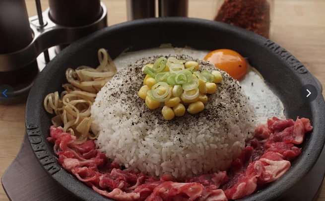 Menunya antara lain Beef Pepper Rice, Chicken Pepper Rice, Salmon Mentai Rice, hingga Spaghetti dengan berbagai saus: original, rendang, atau kari. Daging dan telur disajikan di atas hotplate, memungkinkan pengunjung “memasak” langsung di meja.