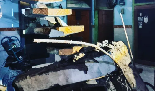 Babinsa Isola, Serka Aldemar S, menyampaikan sekitar 35 personel Kodim 0618/BS dikerahkan untuk membantu pembersihan puing bangunan.