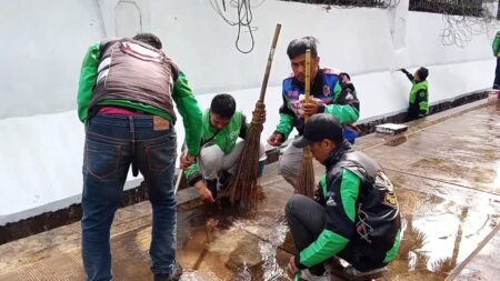 Kompak! Ratusan Ojol Bersihkan Gedung DPRD Jabar Pasca Aksi Demonstrasi