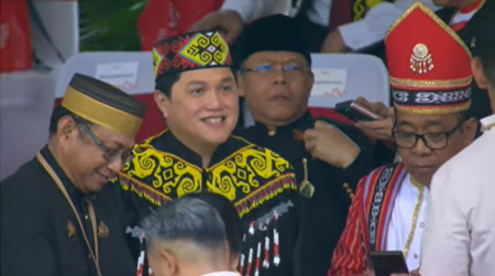 Erick Thohir dan Luhut Hadiri Upacara HUT ke-79 RI di IKN dengan Baju Adat Dayak