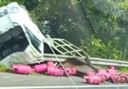 Kecelakaan Beruntun di Tol Padaleunyi Arah Jakarta, Mobil Pengangkut Gas Terguling!