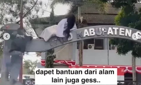 Video yang beredar luas memperlihatkan seorang pendemo mengenakan kostum kuntilanak dan memanjat gerbang DPRD Kabupaten Garut. Aksi ini sontak mengundang tawa, apalagi disertai narasi kocak “dapat bantuan dari alam lain”.