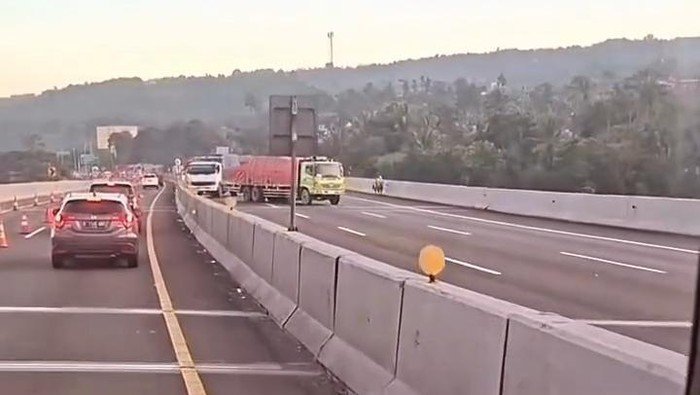 Dalam rekaman yang beredar, terlihat jelas bagaimana truk tronton bermuatan tersebut kesulitan menanjak di jalur tol. Diduga tak kuat menahan beban di tanjakan, truk berwarna hijau itu tiba-tiba bergerak mundur tak terkendali dan akhirnya menabrak kendaraan yang berada tepat di belakangnya.
