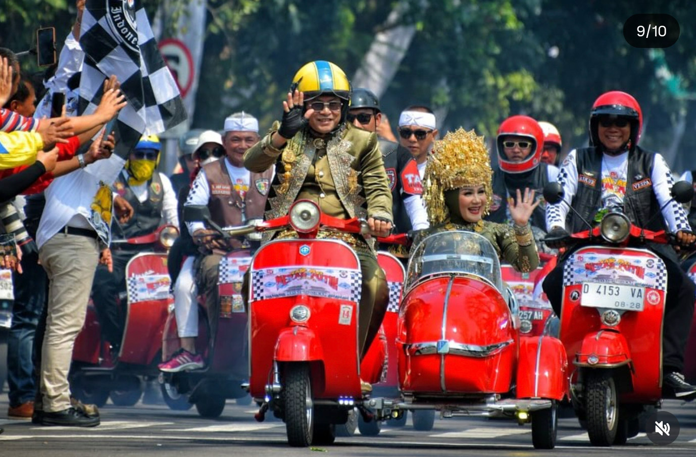 bukamata.id – Wakil Gubernur Jawa Barat, Erwan Setiawan, bersama sang istri Samantha Dewi, turut memeriahkan Kirab Merah Putih bertajuk Pawai Budaya Nusantara – Jabar Istimewa yang digelar komunitas Vespa Antique Club (VAC), Minggu (17/8/2025).